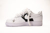Nike Air Force 1 OW BlackWhite Rope Laces: sneaker custom bicolore con lacci oversize bianchi e dettagli neri ispirati allo stile Off-White. Gli anelli metallici e i passanti speciali richiamano l’estetica utility, mentre la corda spessa dona un look grintoso e contemporaneo. Un modello street e d’impatto, perfetto per chi vuole distinguersi con stile.